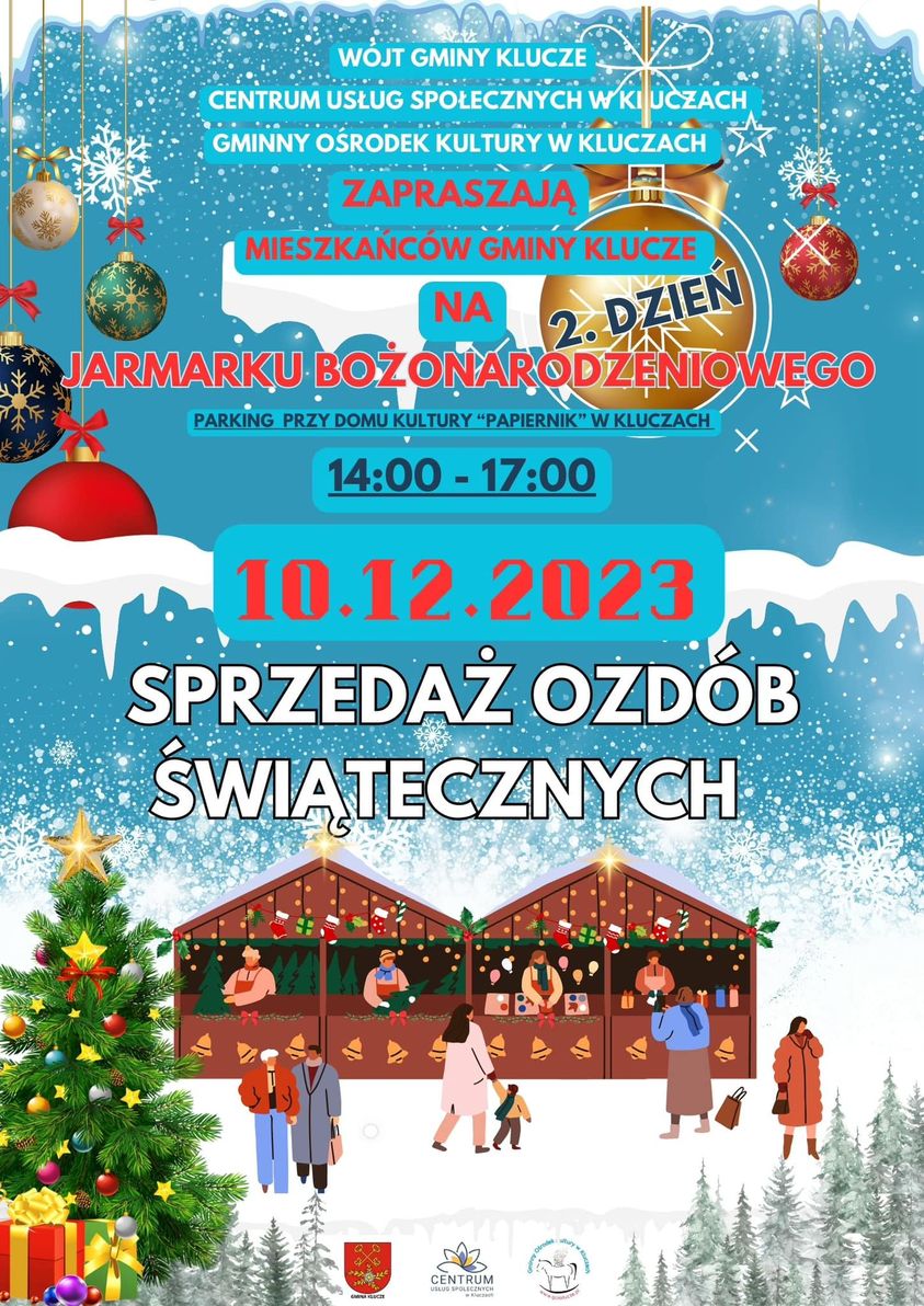 Za nami drugi dzień Jarmarku Bożonarodzeniowego, zorganizowanego przez Centrum Usług Społecznych w Kluczach, we współpracy z Gminnym Ośrodkiem Kultury.
