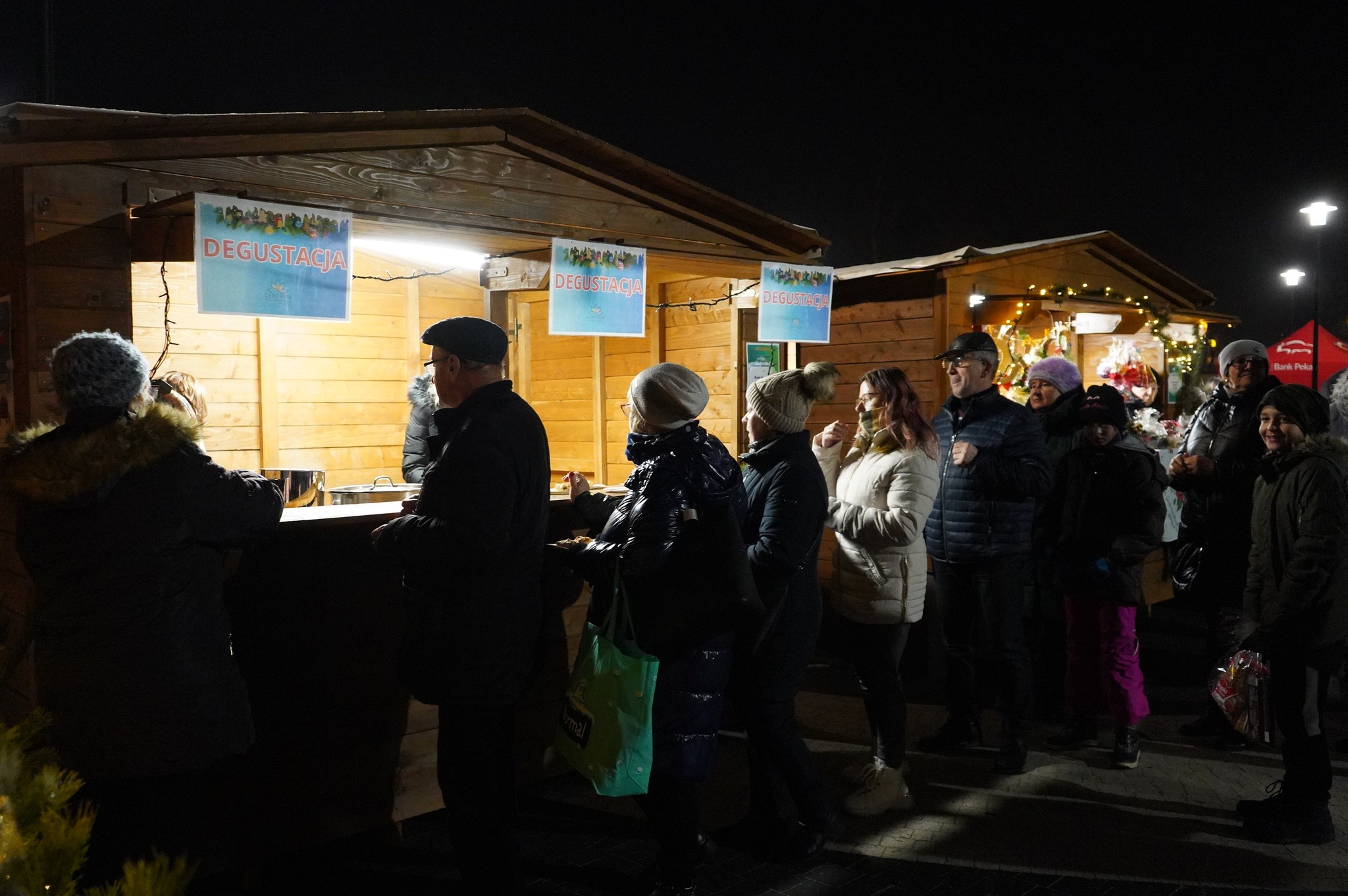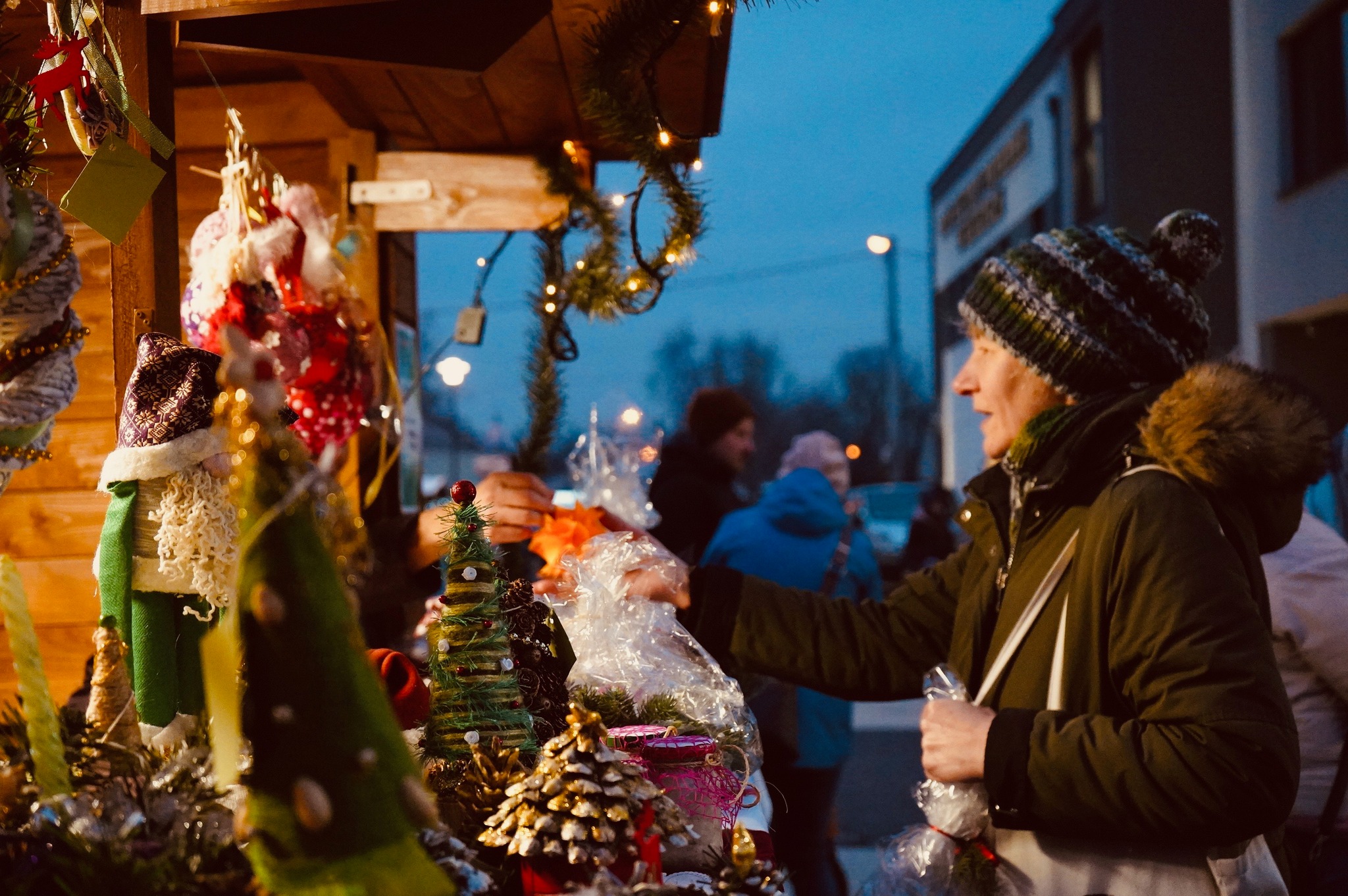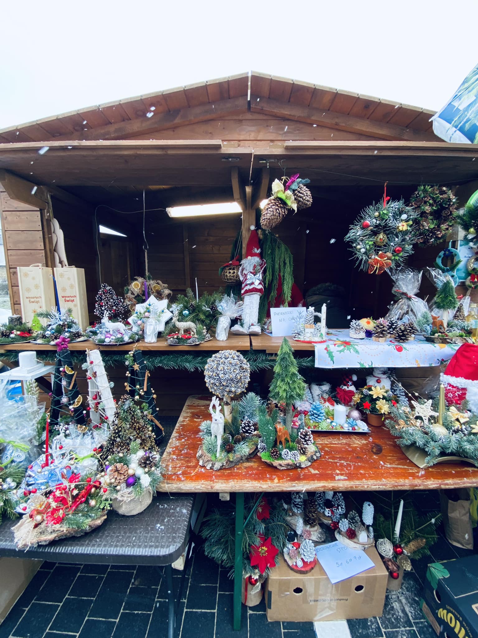 W domkach zakupionych w ubiegłym roku przez Centrum Usług Społecznych wystawcy (wśród których pojawili się przedstawiciele Kół Gospodyń Wiejskich, Warsztatów Terapii Zajęciowych, czy lokalnych przedsiębiorców) kusili nas wyjątkowym asortymentem. W swojej ofercie mieli oni naprawdę szeroką gamę świątecznych upominków i dekoracji, takich jak: bombki, ręcznie haftowane obrusy i serwety, wyroby z drewna, wełny, sznurka czy ceramiki, stroiki i wieńce świąteczne, a także aniołki, krasnale czy renifery. Nie zabrakło również domowych ciast, miodów, aromatycznych przypraw, soków oraz nalewek. Jedynym dylematem było podjęcie decyzji, na co się zdecydować…