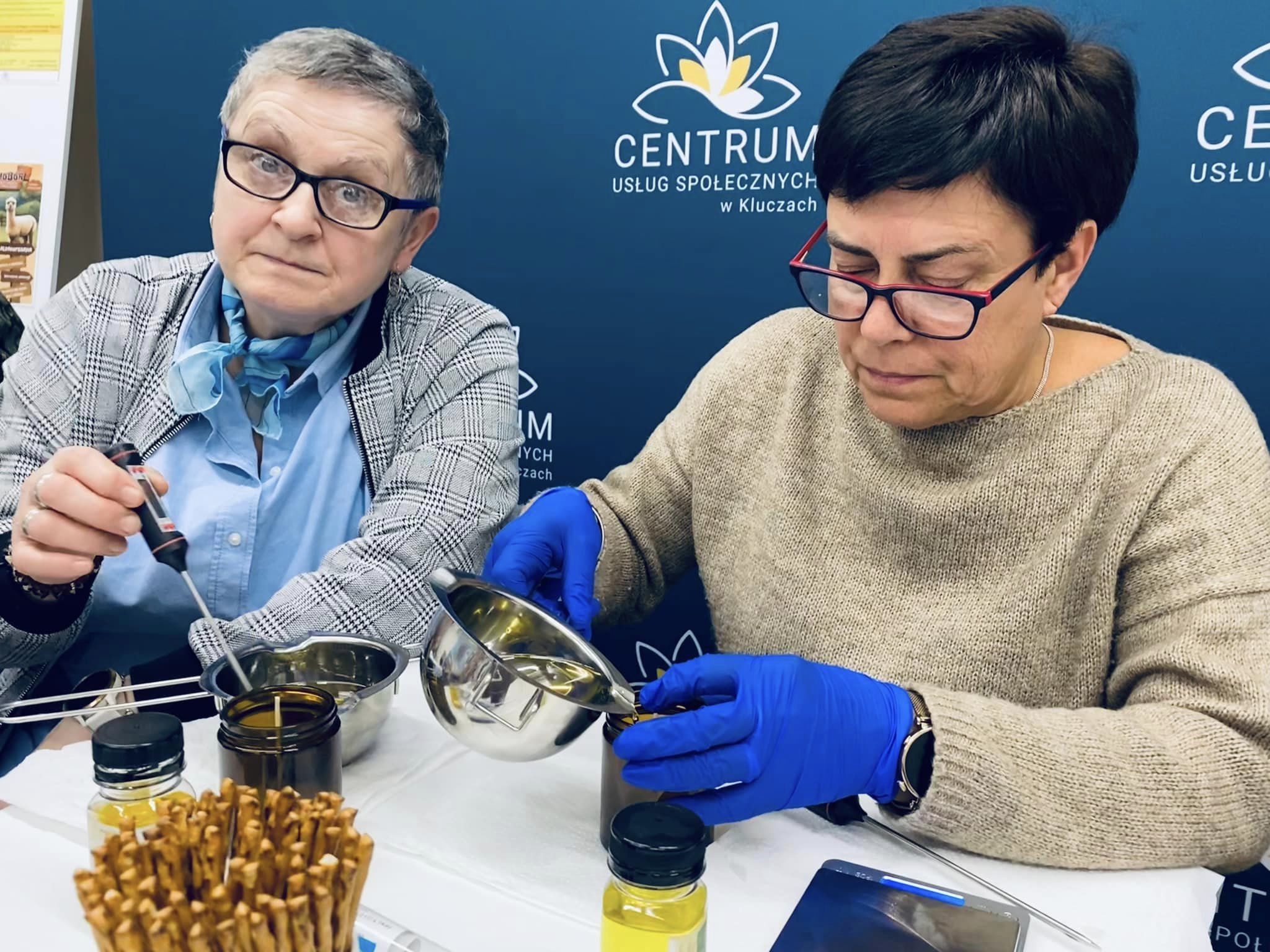 A po części edukacyjnej nadszedł czas na kreatywność! Uczestnicy z entuzjazmem ozdabiali swoje świece oraz wybierali ulubione mieszanki zapachowe, które przywołują świąteczne wspomnienia.
